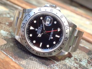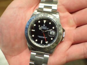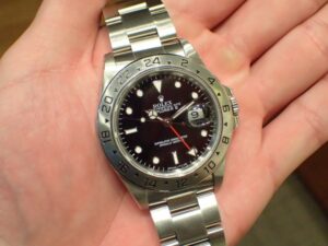 本日はROLEX EXPLORERⅡ【Ref.16570】をご紹介いたします。前モデルと比較して、外観上の大きな違いはみられませんが、ベゼル上の数字の書体が若干細くなりスマートな印象を受けます。ダイヤルカラーのバリエーションもレアダイヤルとされたアイボリーがラインナップから消え、ブラックとホワイトの2色展開となる。ムーブメントにはしっかりと改良が加えられており、搭載されているCal.3185は、Cal.3085同様2ヶ国の時間を把握できるGMT機能や、日付が瞬時に切り替わるクイックチェンジ機能は継承し、テンプ受けがツインブリッジになったことであがき調整も行ないやすくなり、メンテナンス性・安定性が向上している。貴重な保証書(アメリカギャラ)も付属しております。お電話やメールにて【試着予約】も承っておりますので、気になられている方やご検討中の方は、是非お気軽にクォーク銀座店までお問い合わせ下さいませ。 | ||