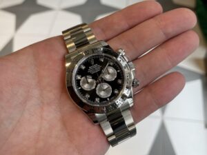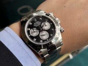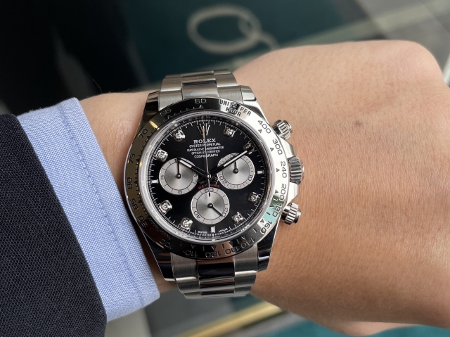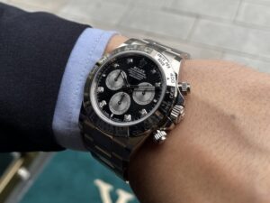 本日はROLEX DAYTONA【Ref.126509G】をご紹介いたします。2023年より登場した現行モデルのデイトナ。ブレスレットまでも18Kホワイトゴールドが使用されておりますので、ベゼルはセラミックベゼルではなく全てホワイトゴールド。メカニカルなデザイン、シルバーの統一感が人気のモデルでございます。先代モデルRef.116509に比べ、精度・耐久性・審美性のすべてが進化しています。こちらの商品は2024年製の個体で、コンディションも極めて良好です。お電話やメールにて【試着予約】も承っておりますので、気になられている方やご検討中の方は、是非お気軽にクォーク銀座店までお問い合わせ下さいませ。