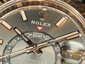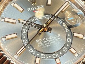 | 本日はROLEX SKY-DWELLER【Ref.326235】をご紹介いたします。こちらは2020年から2023年まで生産されていた、現行モデル【Ref.336235】の一つ前のモデルです。アニュアルカレンダーやGMT機能が搭載されているとても機能的な面もありながら、温かみのあるエバーローズゴールドにキレのあるスレート文字盤というコントラストが美しい逸品です。軽快な着け心地のオイスターフレックスブレスレットにサイズ調整が簡単なグライドロックエクステンションが採用されたバックルでとてもお使いいただきやすい仕様となっております。今回ご紹介の個体は2021年製で、金無垢特有の線傷等がございますがおおむね良好なコンディションを保っております。お電話やメールにて【試着予約】も承っておりますので、気になられている方やご検討中の方は、是非お気軽にクォーク銀座店までお問い合わせ下さいませ。 | ||
