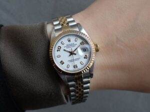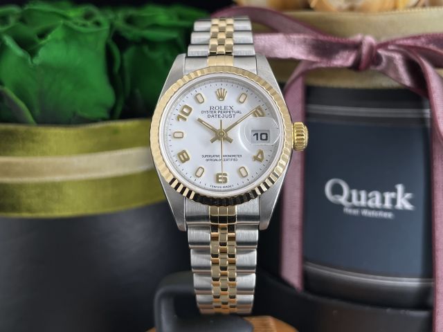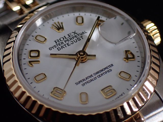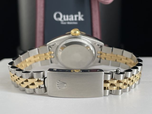 | 本日はROLEX DATEJUST【Ref.79173】をご紹介いたします。こちらは1999年から2003年まで製造されていた、レディースサイズのデイトジャストです。ステンレススチールと18Kイエローゴールドのコンビモデルで、上品さと華やかさを兼ね備えた永遠の定番デザイン。本個体は、ホワイトの“飛びアラビア”文字盤を採用した少し珍しい仕様で、クリーンな白文字盤にアラビアインデックスが美しく映える、クラシックでありながら個性の光る一本です。日本ロレックスにてメンテナンスを実施しており、安心してご使用いただけるコンディションです。年式を考慮しても非常に状態が良く、これからも末永くご愛用いただけます。現行モデルに比べるとお手頃な価格帯ながら、ロレックスならではの高級感と確かな精度を存分に味わえる魅力的なモデルです。お電話やメールにて【試着予約】も承っておりますので、気になられている方やご検討中の方は、是非お気軽にクォーク銀座店までお問い合わせ下さいませ。 | ||