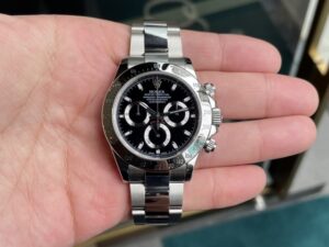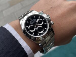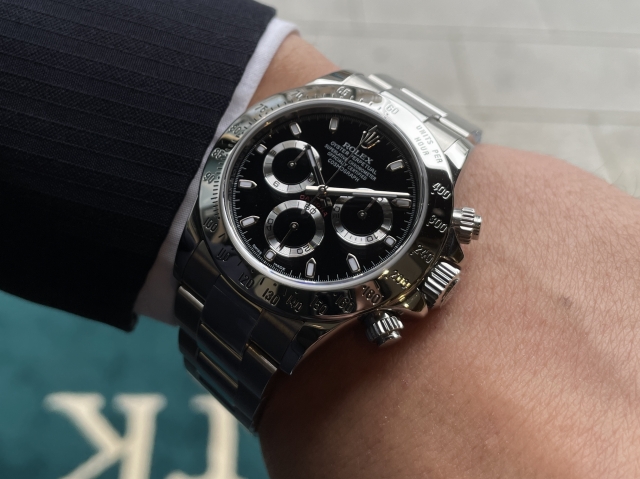 | 本日はROLEX 【Ref.116520】をご紹介いたします。2000年~2016年の生産期間の中で夜光塗料の変更や、インナーリングに刻印が入るなど様々なマイナーチェンジが行われてきたモデルになります。こちらは2012年製で6時側の外せるコマを2つにしたことによって、手首の細い方でも腕にジャストフィットする仕様になっております。コンディションも目立つような傷はなく非常に良いコンディションを保っております。お電話やメールにて【試着予約】も承っておりますので、気になられている方やご検討中の方は、是非お気軽にクォーク銀座店までお問合せ下さいませ。 |