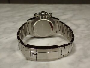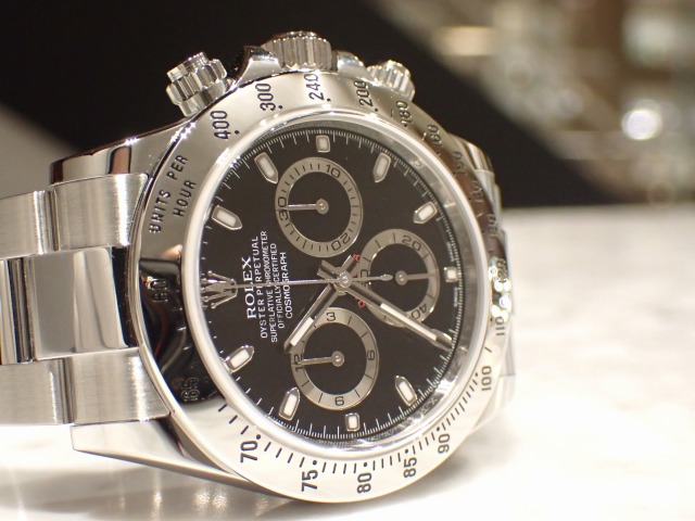 | 本日はROLEX DAYTONA【Ref.116520】をご紹介いたします。こちらは2000年から2016年まで製造されていたデイトナです。基本デザインは前モデル【Ref.16520】を踏襲しながらも、ムーブメントの変更に合わせてインダイヤルのレイアウトが見直され、インデックスの大型化など細部がブラッシュアップされています。文字盤のバリエーションは前モデル同様、ブラックとホワイトの2タイプです。現行モデル【Ref.126500LN】ではホワイトダイヤルが人気ですが、【Ref.116520】ではブラックダイヤルが支持を集めています。また、ブレスレットは、前モデルで中空だった中央リンクがソリッドパーツに変更され、堅牢性が向上しています。バックルには容易に微調整できるイージーリンクを備え、装着時の快適性や着脱の操作性が高められています。こちらの個体は2025年11月にオーバーホールを行っており、ご安心してお使いいただけます。使用感が若干ございますが、2014年製の個体を考慮すると、非常に良好なコンディションを保っております。お電話やメールにて【試着予約】も承っておりますので、気になられている方やご検討中の方は、是非お気軽にクォーク銀座店までお問い合わせ下さいませ。 | ||
