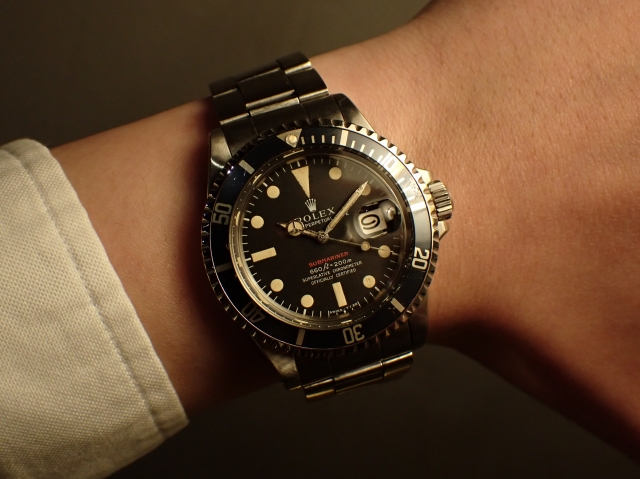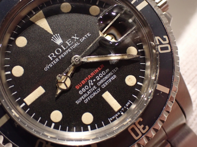 本日は ROLEX SUBMARINER【Ref.1680】をご紹介いたします。ヴィンテージサブマリーナーでは圧倒的に人気なモデルの「赤サブ」!バランス良く焼けたトリチウム夜光が雰囲気抜群のオススメ個体です。今回ご紹介中のお品は4型ダイアルに3型ベゼル、そして9315の巻きブレス(巻き込み式ブレスレット)が装備されております。4型ダイアルはフィートファーストにオープン6、『ft』の横棒が同一線上に無い仕様。そしてこの個体特有のややネイビーにエイジングしたベゼルインサートもカッコイイですね。ブレスレットの「巻きブレス」は70年代前半の古き良き味わいがございますので、試着したことがない方は是非お試しくださいませ。お電話やメールにて【試着予約】も承っておりますので、気になられている方やご検討中の方は、是非お気軽にクォーク銀座店までお問い合わせ下さいませ。 |