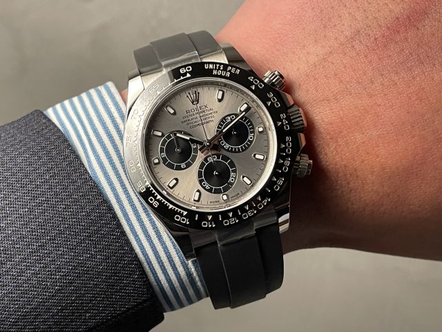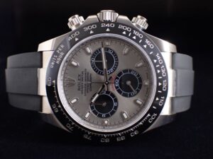本日は ROLEX DAYTONA【Ref.116519LN】 をご紹介いたします。こちらは 2018年製のホワイトゴールド製オイスターフレックス デイトナ です。スチールブラックの文字盤はホワイトゴールドとの相性も抜群で、世界的にも非常に人気の高いカラーリングとなっております。シャープで洗練された印象の現行モデルRef.126519LNと比較すると、本モデルはインダイヤルのブラックサークルがやや太めにデザインされており、インデックスも丸みを帯びた縁取りの夜光仕様。全体として、よりワイルドで力強く、男らしい雰囲気を感じさせる一本です。昨今のインフレや相場上昇が続く中において、こちらの個体は非常に魅力的な価格帯でございます。お電話やメールにて【試着予約】も承っております。ご興味をお持ちの方やご検討中の方は、ぜひお気軽にクォーク銀座店までお問い合わせくださいませ。 |