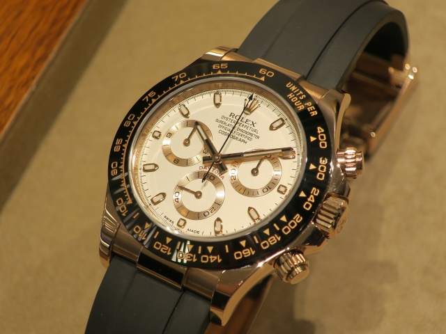 本日はROLEX DAYTONA【Ref.116515LN】をご紹介いたします。華やかでありつつ柔らかい色味のピンクゴールドモデルは近年非常に人気の高い素材で、オイスターフレックスとの組み合わせにより更に使いやすくなっております。そして、現行モデルにはないこちらのアイボリーダイヤルは独特な色味と質感が魅力的で、ホワイト系のダイヤルでご検討中の方には是非一度ご覧になっていただきたいダイヤルです。コンディションといたしましては大きく目立つような外傷はなく、オーバーホール・外装仕上げのメンテナンスが行われております。お電話やメールにて【試着予約】も承っております。ご興味をお持ちの方やご検討中の方は、ぜひお気軽にクォーク銀座店までお問い合わせくださいませ。 |