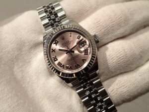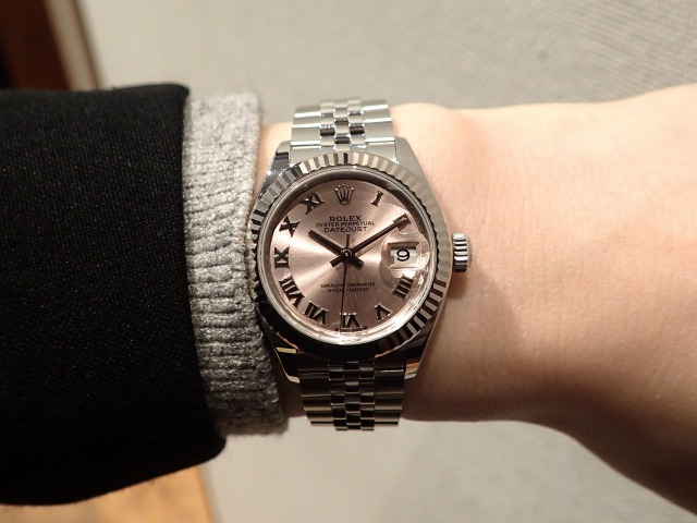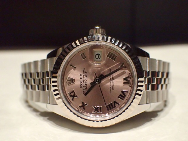 本日はROLEX DATEJUST28【Ref.279174】をご紹介いたします。こちらは2017年から製造されているレディースデイトジャストでございます。フルーテッドベゼルには18Kホワイトゴールドを使用しており、上品でさりげない高級感が漂います。淡く明るい色合いのピンク文字盤は肌なじみが良く、個性的でありながら主張しすぎず、さまざまな装いに合わせやすいデザインです。さらに、ローマ数字インデックスを採用し、クラシックで洗練された印象を与えます。こちらの個体は2025年12月に外装仕上げを行っており、全体的に綺麗な状態です。お電話やメールにて【試着予約】も承っております。ご興味をお持ちの方やご検討中の方は、ぜひお気軽にクォーク銀座店までお問い合わせくださいませ。 |
