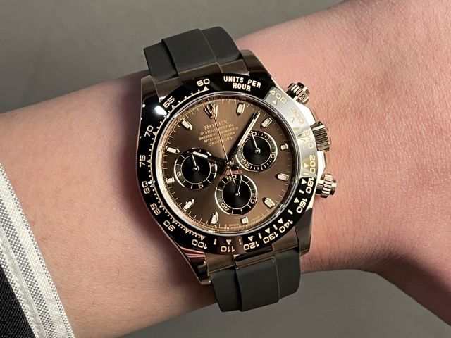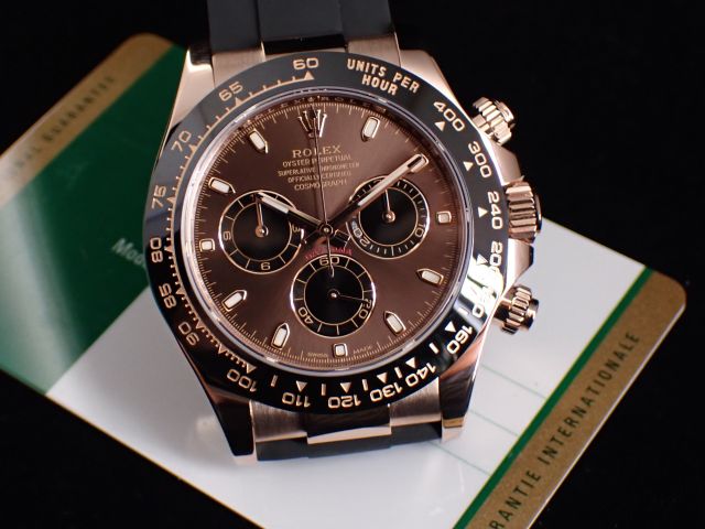 本日は新入荷商品、ROLEX DAYTONA【Ref.116515LN】をご紹介いたします。こちらは2020年製、ピンクゴールド素材にオイスターフレックスブレスレットを組み合わせたデイトナでございます。スポーティーなデザインに、落ち着いた色味のチョコレート文字盤が美しく調和し、上品さと高級感を兼ね備えた非常に人気の高いモデルです。現行モデルの一つ前の型番となるため、価格面でも比較的お求めやすく、大変おすすめの一本です。さらに、オーバーホールおよび外装仕上げのメンテナンスも完了しておりますので、コンディションも良好で安心してご使用いただけます。お電話やメールにて【試着予約】も承っております。ご興味をお持ちの方やご検討中の方は、ぜひお気軽にクォーク銀座店までお問い合わせくださいませ。
