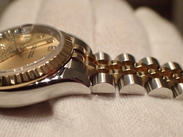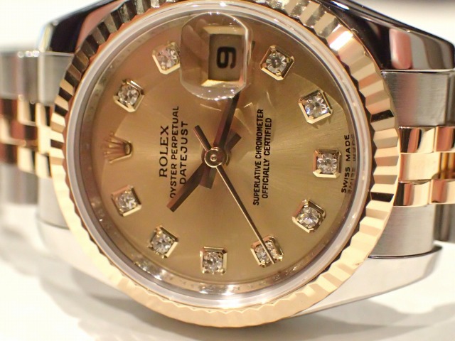 本日はROLEX DATEJUST【Ref.179173G】をご紹介いたします。こちらは2003年から2016年まで製造されていた26mmレディースデイトジャストでございます。フルーテッドベゼルとブレスレット中央パーツに18Kイエローゴールドを採用し、シャンパン文字盤には10Pダイヤモンドをセッティングした、ラグジュアリーな存在感を放つモデルでございます。煌びやかな輝きが手元を華やかに演出し、時代やトレンドに左右されない普遍的な高級感をお楽しみいただけます。こちらの個体は2026年1月にオーバーホールを行っており、ご安心してお使いいただけます。お電話やメールにて【試着予約】も承っております。ご興味をお持ちの方やご検討中の方は、ぜひお気軽にクォーク銀座店までお問い合わせくださいませ。 |