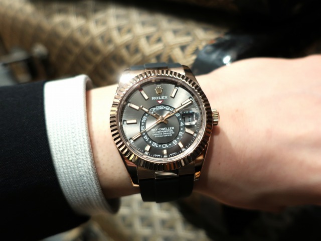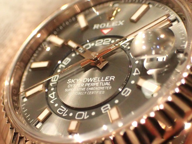 本日はROLEX SKY-DWELLER【Ref.326235】をご紹介いたします。こちらは2020年から2023年まで生産されておりました現行の一つ前のモデルでございます。アニュアルカレンダーの搭載により、日付の調整は年に一度2月から3月に代わる時のみですので非常にお使いいただきやすいです。ロレックスとしてはやや大きめな42ミリのローズゴールド無垢ケースは重厚感がございますが、オイスターフレックスブレスレットが付いていますので着け心地も軽快です。今回ご紹介の個体は2021年製で、金無垢特有の線傷等はございますが概ね良いコンディションを保っております。お電話やメールにて【試着予約】も承っております。ご興味をお持ちの方やご検討中の方は、ぜひお気軽にクォーク銀座店までお問い合わせくださいませ。 |