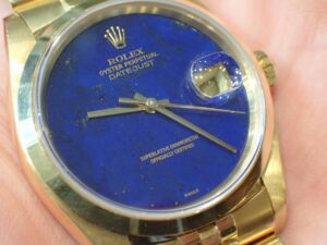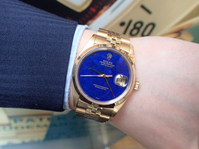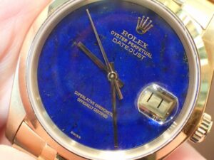 本日はROLEX DATEJUST【Ref.16008】をご紹介いたします。中古市場でも圧倒的に流通量も少なく、その中でもスムースベゼル仕様は極めて希少な個体となります。更に本個体には、深みのあるブルーが魅力の天然石、ラピスラズリが採用されております。全体のコンディションも良好なため、大変お勧めな1本となります。お電話やメールにて【試着予約】も承っております。ご興味をお持ちの方やご検討中の方は、ぜひお気軽にクォーク銀座店までお問い合わせくださいませ。