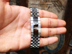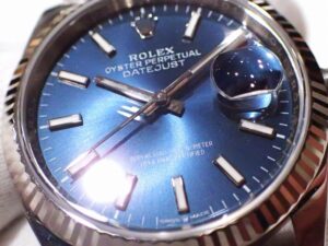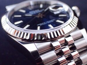 本日はROLEX DATEJUST36【Ref.126234】をご紹介いたします。こちらは2019年より製造されている現行モデルでございます。サンレイ仕上げのブライトブルー文字盤は、光の反射でブルーの濃淡が変わりとても美しいです。フルーテッドベゼルやジュビリーブレスレットもまた、光を反射してキラキラと輝くので全体的なバランスの取れた逸品でございます。前モデル【Ref.116234】と異なり、ジュビリーブレスレットにもオイスタークラスプが採用されているので操作性や強度の面で実用性が高くなっています。今回ご紹介の個体は2021年製で、細かな線傷等はございますが概ね良いコンディションを保っております。お電話やメールにて【試着予約】も承っております。ご興味をお持ちの方やご検討中の方は、ぜひお気軽にクォーク銀座店までお問い合わせくださいませ。 |